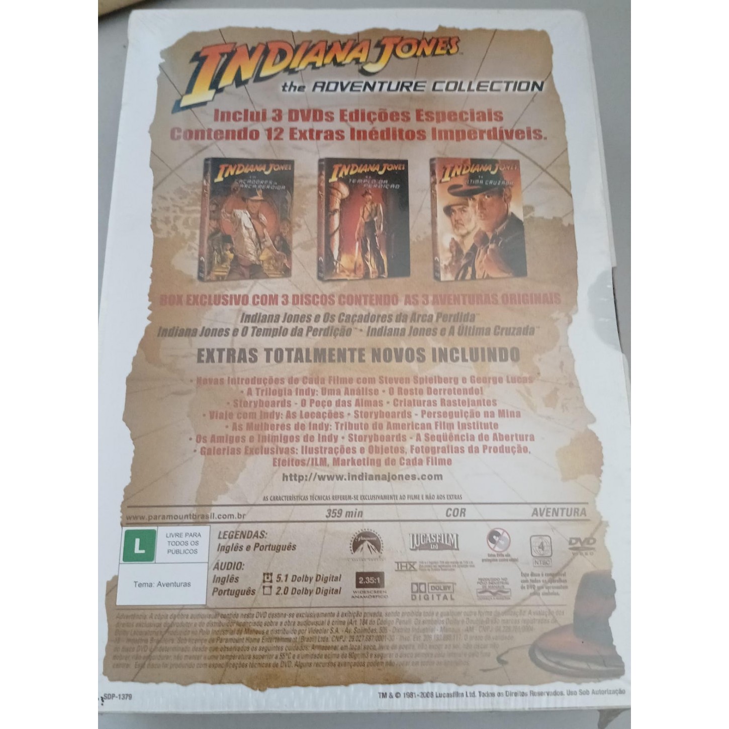 COLEÇÃO INDIANA JONES - THE ADVENTURE COLLECTION - 3 DVDs - ORIGINAL LACRADO